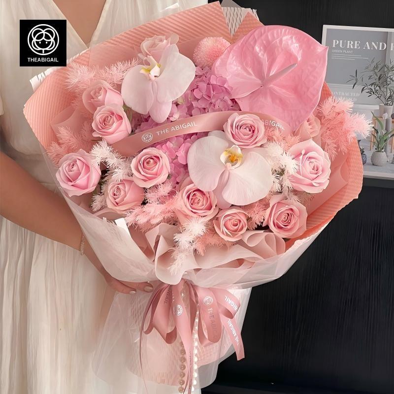 Hydrangea, Phalaenopsis,Pink Roses,Anthurium (spray color),Seasonal Flowers