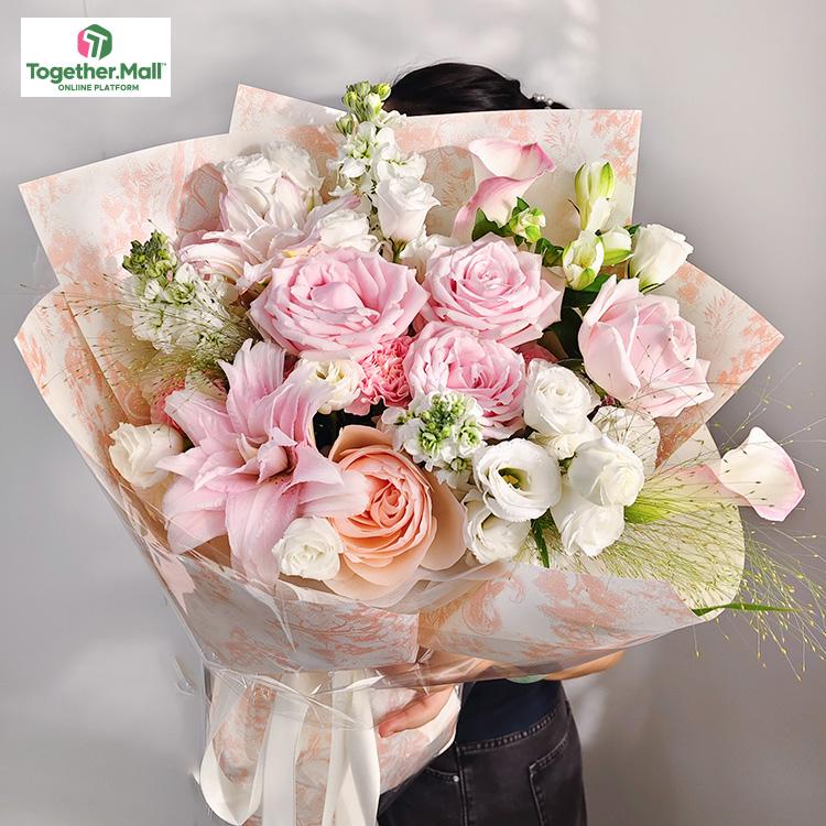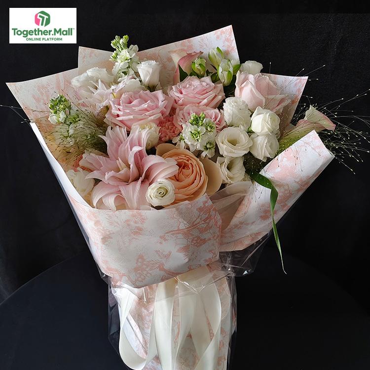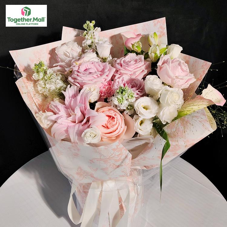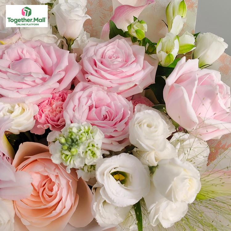 重瓣百合,粉色玫瑰,凱薩琳玫瑰,馬蹄蓮,六出花,康乃馨,時令配花