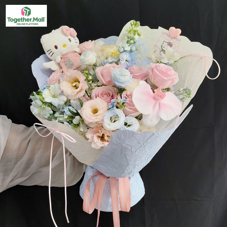 蝴蝶蘭,六出花,粉色玫瑰,桔梗,康乃馨,藍星花,時令配花