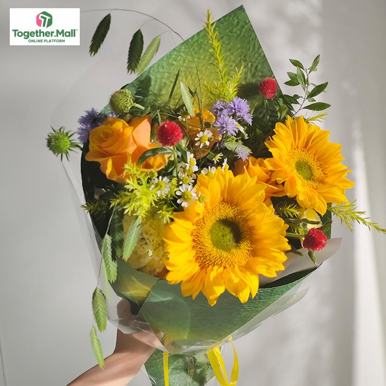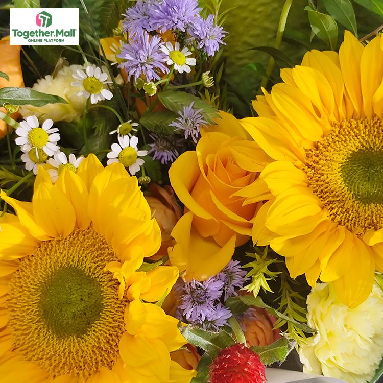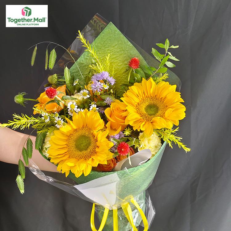 向日葵、黃色玫瑰、黃色桔梗、時令配花