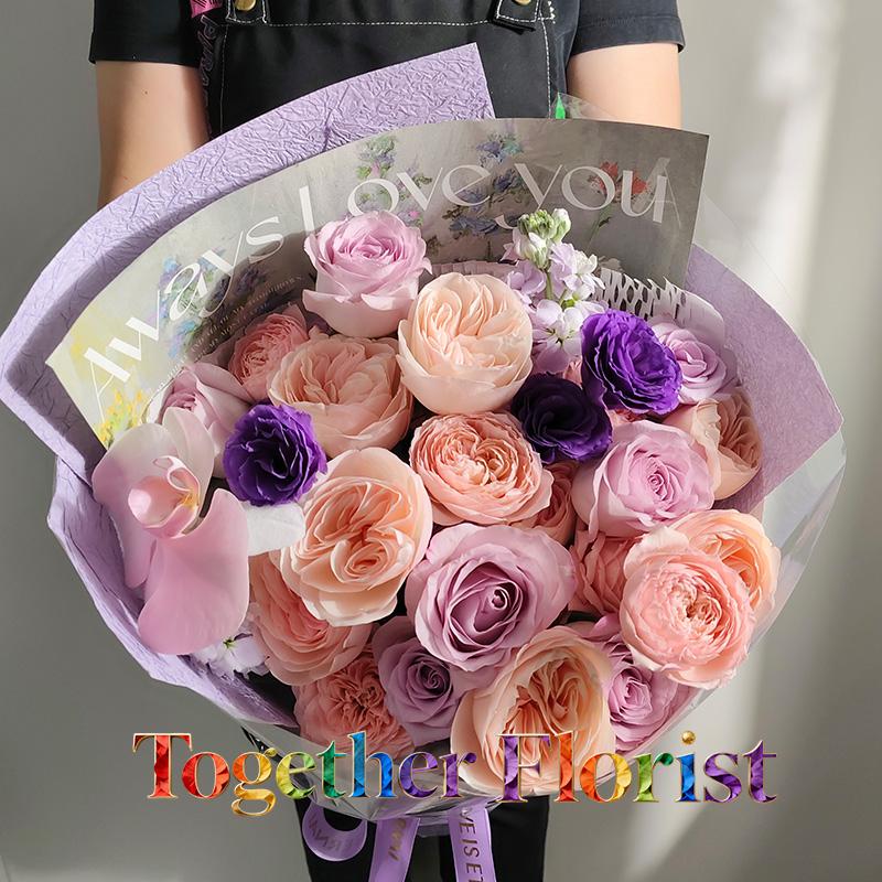 蝴蝶蘭,朱麗葉塔玫瑰,氣場玫瑰,凱瑟琳玫瑰,桔梗,紫羅蘭