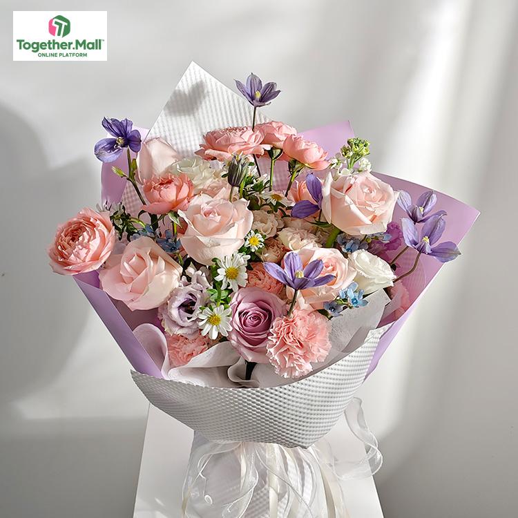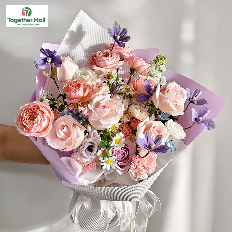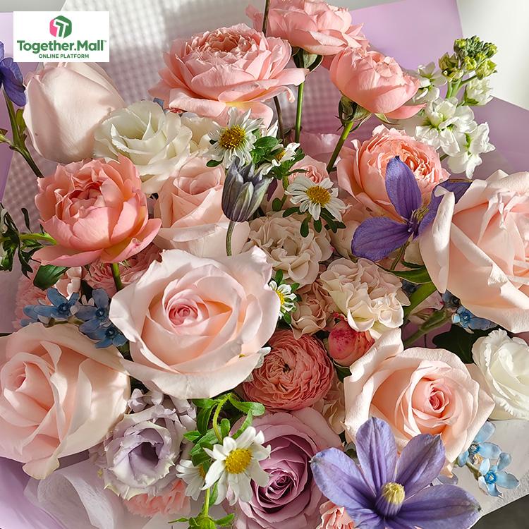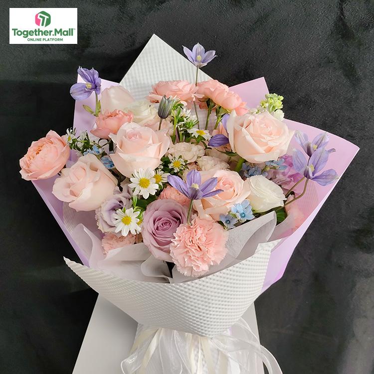 雙魚座玫瑰,朱麗葉塔多頭玫瑰,紫霞玫瑰,康乃馨,桔梗,鐵線蓮,時令配花