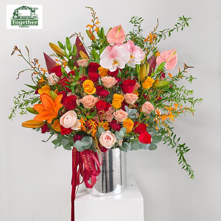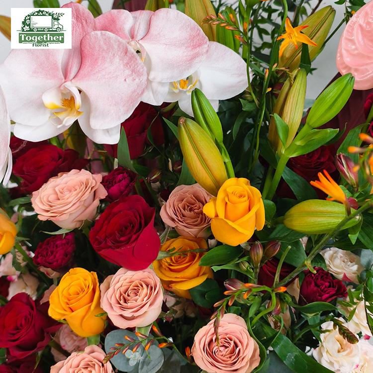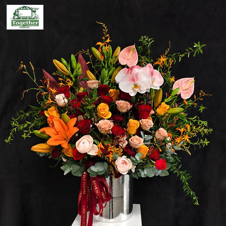 蝴蝶蘭,百合,卡布奇洛玫瑰,紅色玫瑰,輝煌玫瑰,粉掌,時令配花