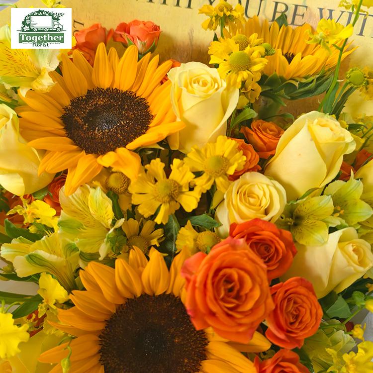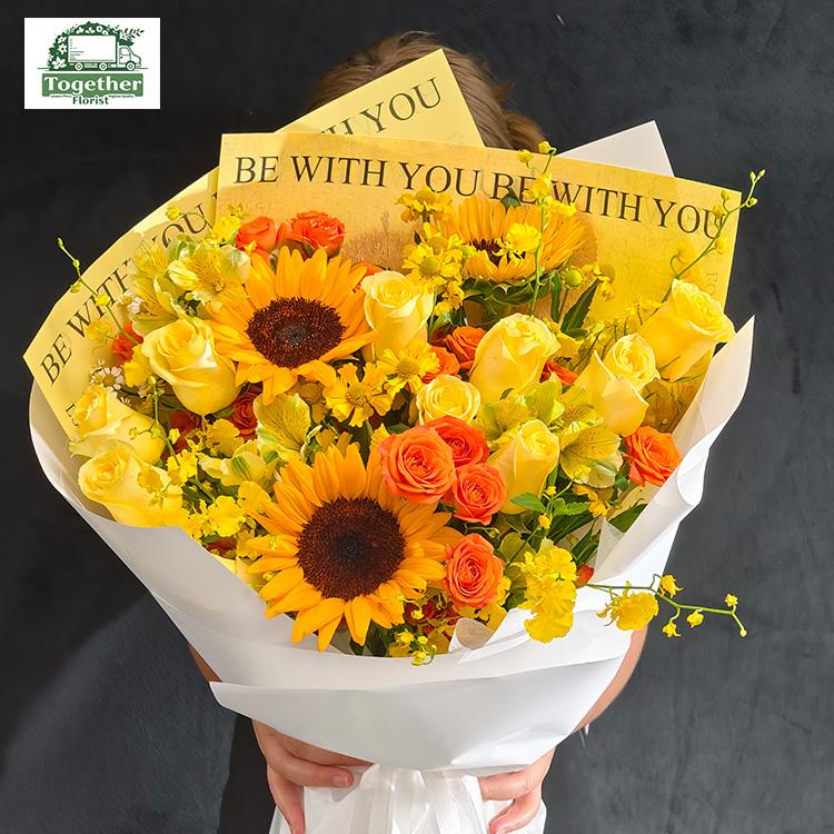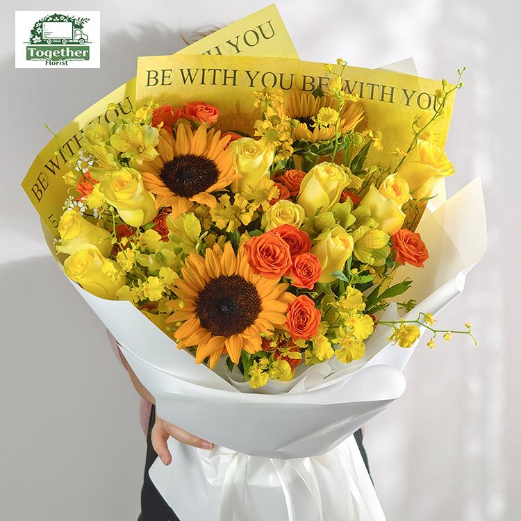 向日葵,月光漫步玫瑰,六出花,跳舞蘭,橙芭比多頭玫瑰,時令配花