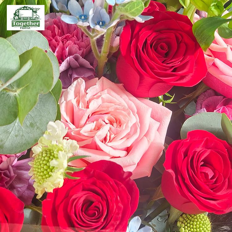 高原紅、閨蜜玫瑰、六初花、藍星花、時令配花