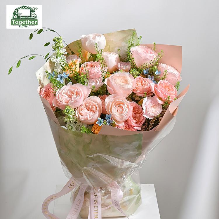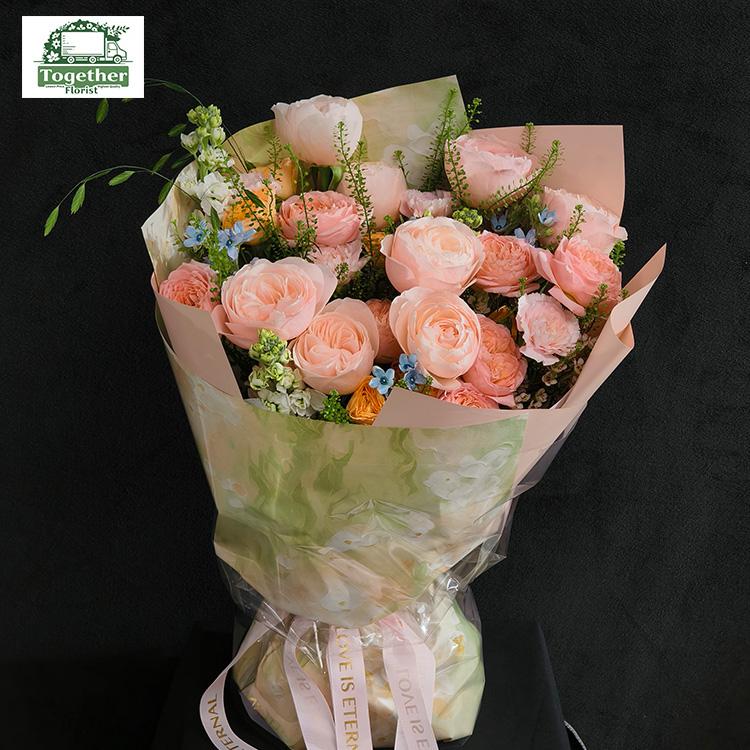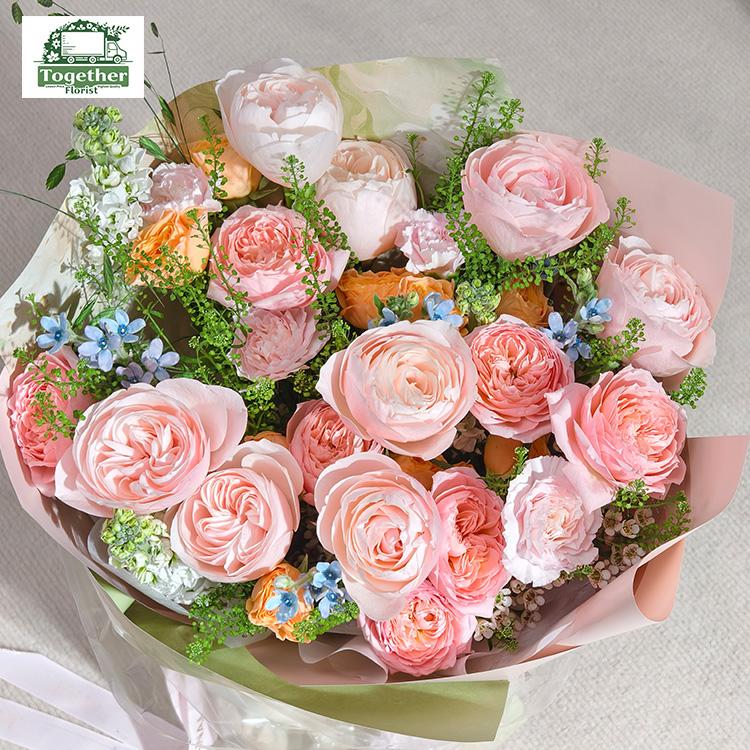 凱瑟琳玫瑰,朱麗葉塔玫瑰,橙色多頭玫瑰,康乃馨,時令配花