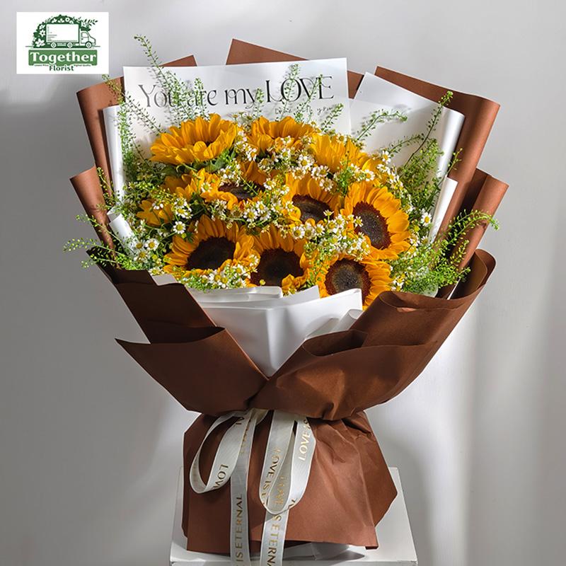 10枝向日葵,小雛菊,綠靈草