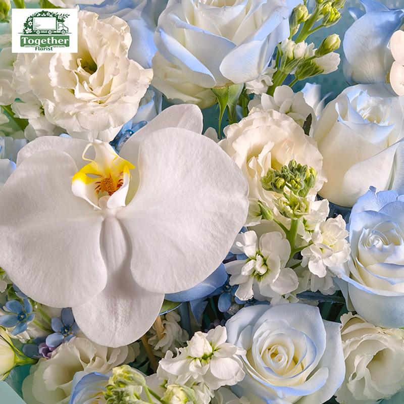 蝴蝶蘭,碎冰藍玫瑰,桔梗,紫羅蘭,時令配花