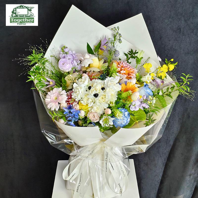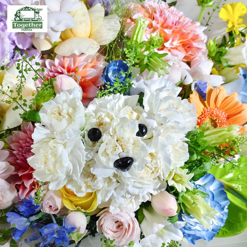 康乃馨,桔梗,大麗花,玫瑰,非洲菊,紫羅蘭,跳舞蘭,鐵線蓮,風鈴花,時令配花