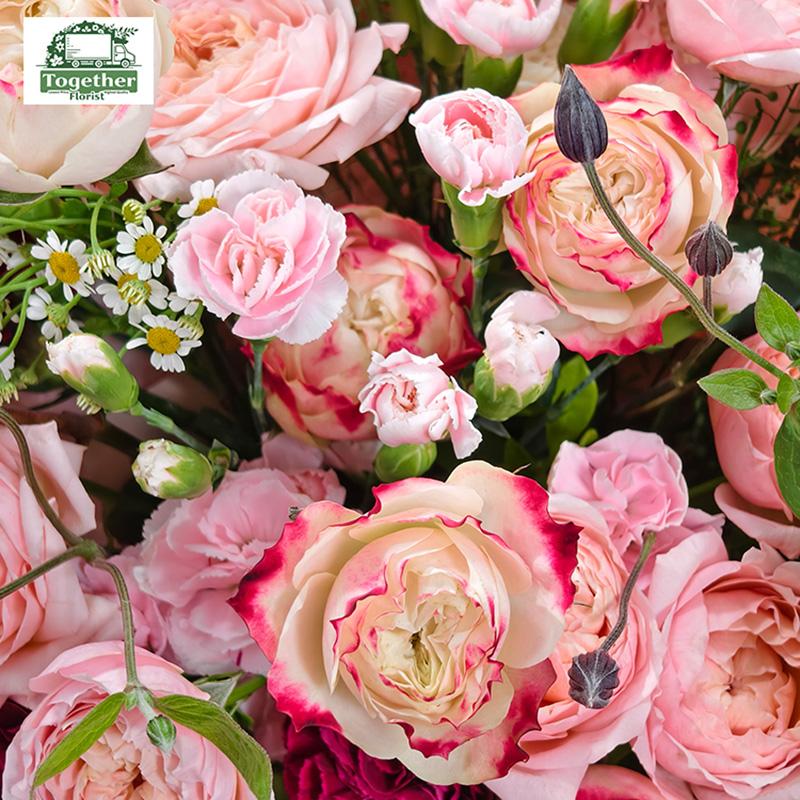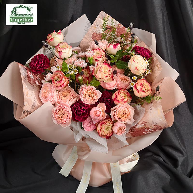 朱麗葉塔玫瑰,蘋果傑克玫瑰,康乃馨,時令配花