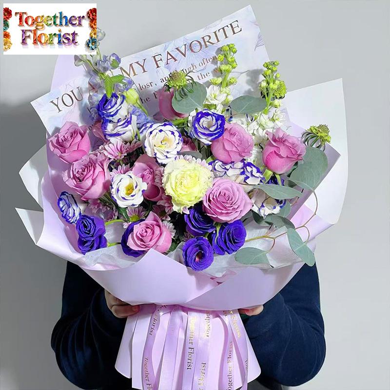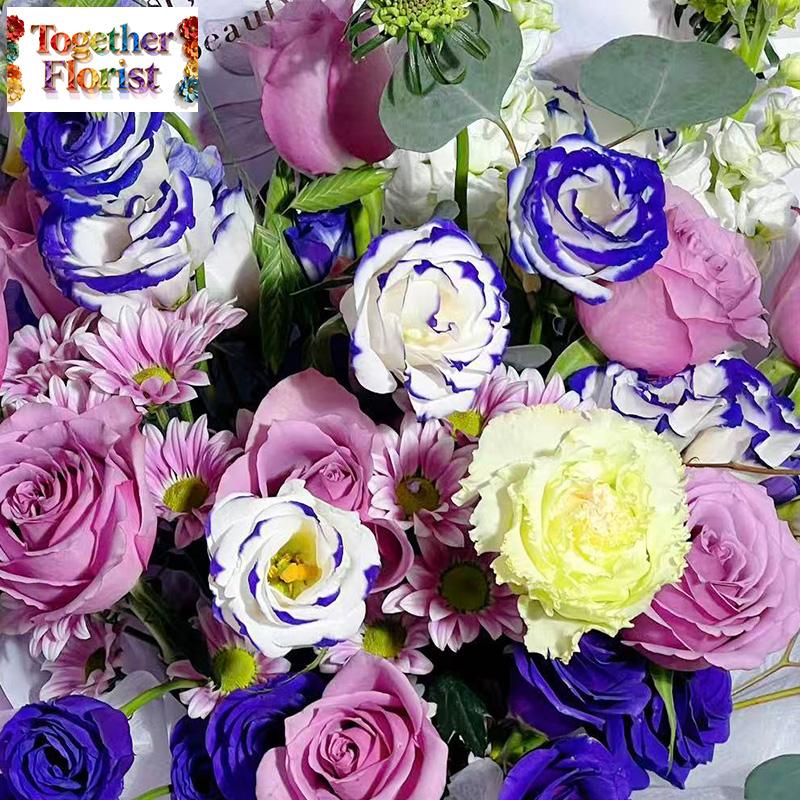 紫霞仙子玫瑰,紫邊桔梗,深紫色桔梗,雛菊,紫羅蘭,冰淇淋桔梗,時令配花