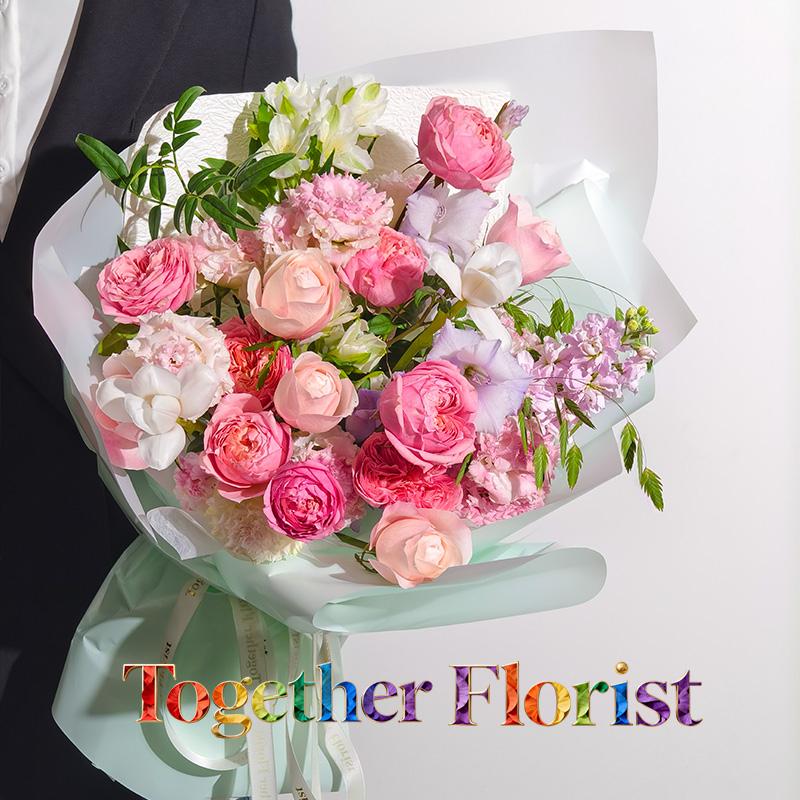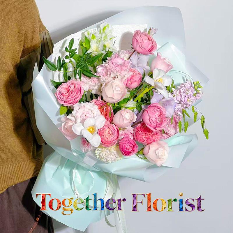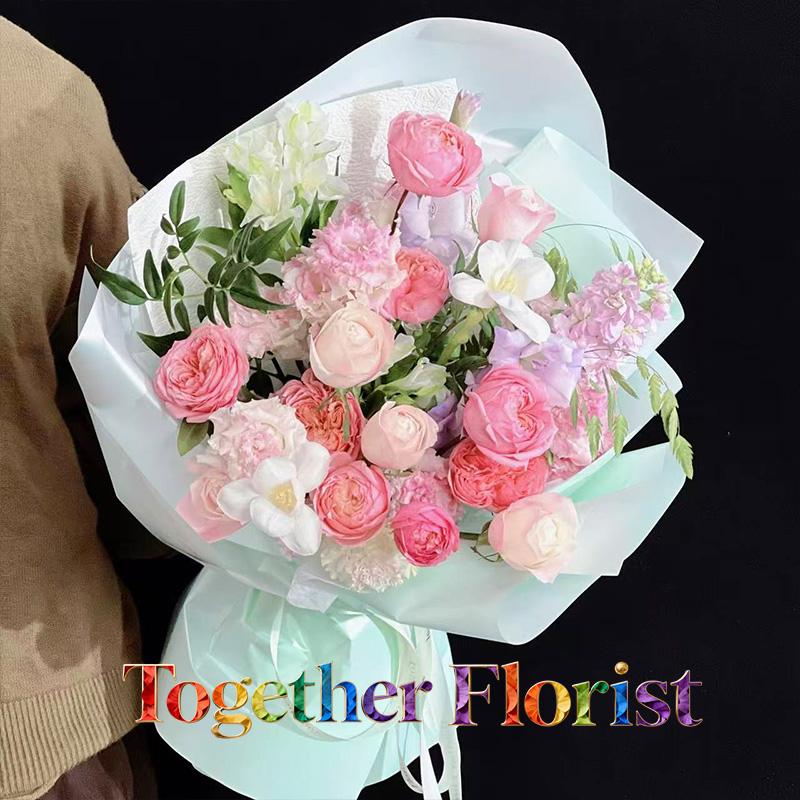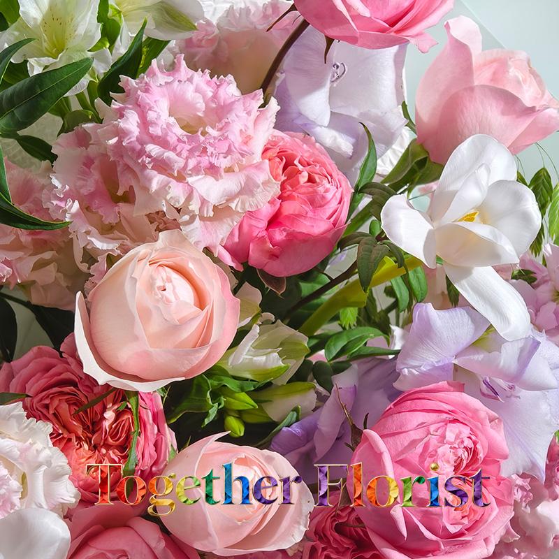 鬱金香,朱麗葉塔玫瑰,凱瑟琳玫瑰,桔梗,六出花,劍蘭,紫羅蘭,時令配花