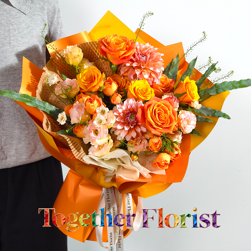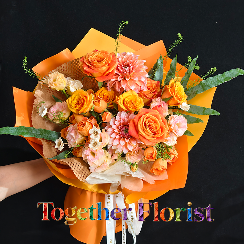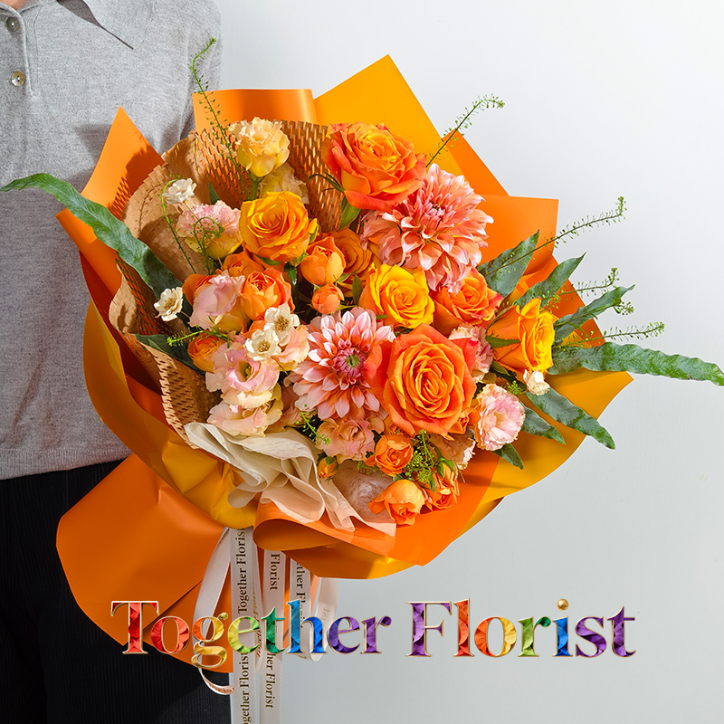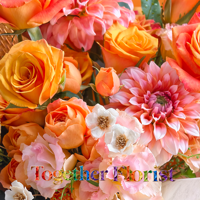 辉煌玫瑰,歡樂頌玫瑰,果汁陽台多頭玫瑰,大麗花,桔梗,時令配花