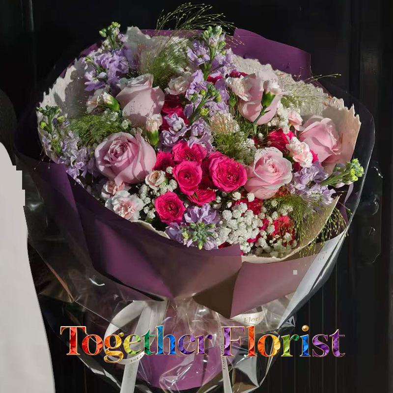 紫羅蘭,粉雪山,蘇菲寶貝,滿天星,康乃馨,時令配花
