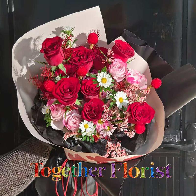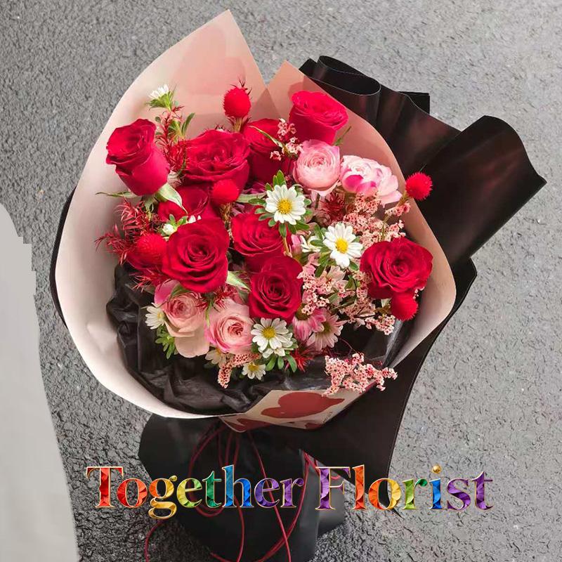 紅玫瑰,多頭折射玫瑰,迷你菊,水晶草,時令配花