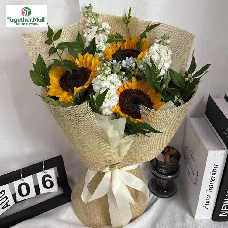 向日葵,白色紫羅蘭,藍星花,時令配花