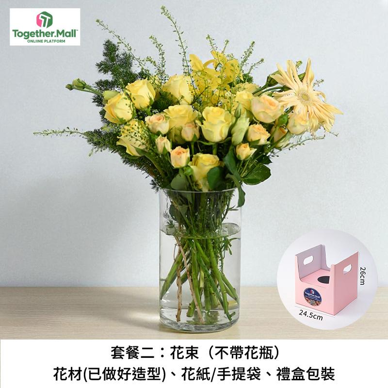 套餐二:花束(不带花瓶)、花材(已做好造型)、禮盒包装