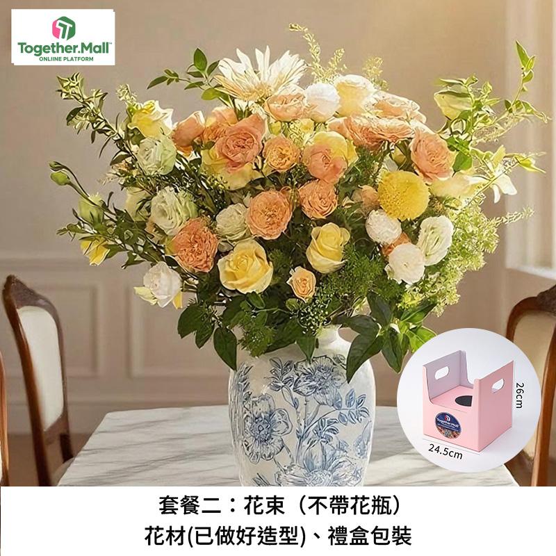套餐二:花束(不带花瓶)、花材(已做好造型)、禮盒包装