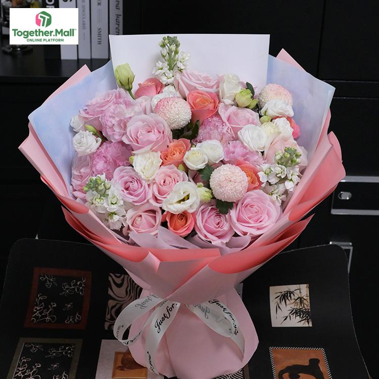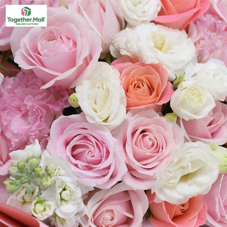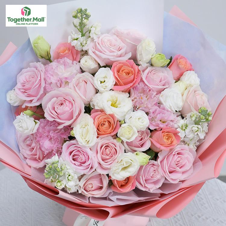 粉色玫瑰,白色桔梗,康乃馨,紫羅蘭