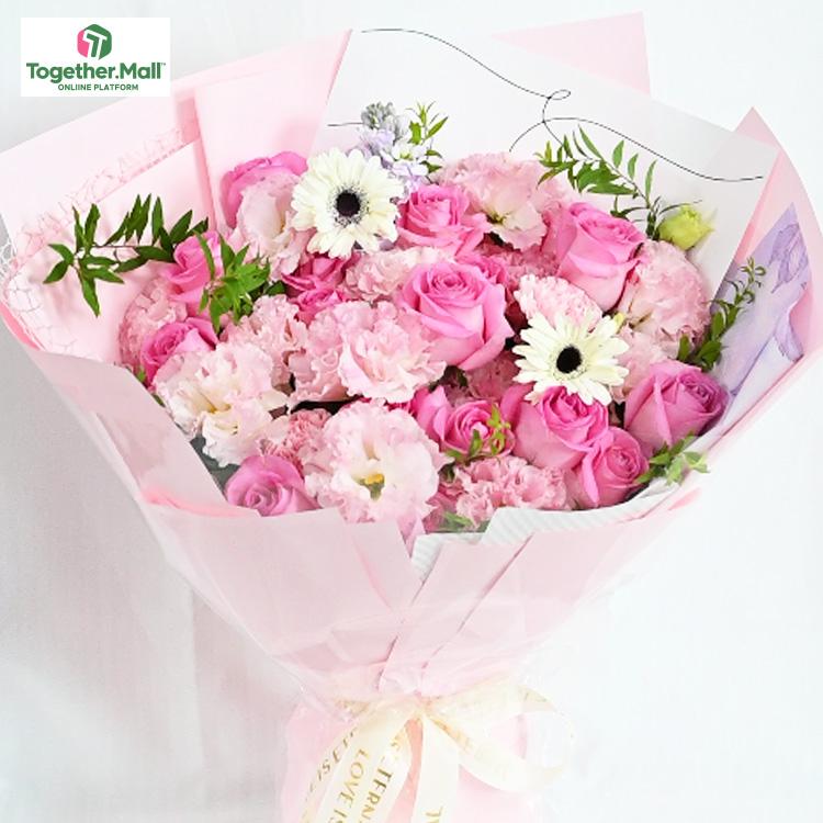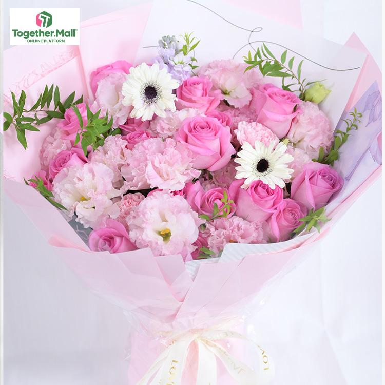 非洲菊,粉色玫瑰,康乃馨,時令配花