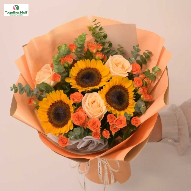 向日葵、香檳玫瑰、多頭玫瑰、大葉尤加利