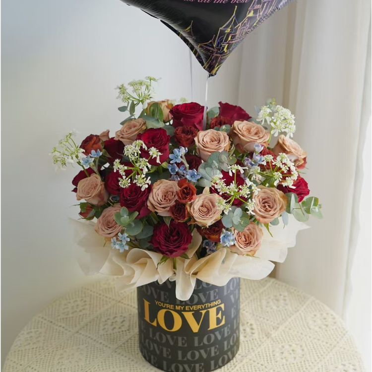 卡布奇洛玫瑰,紅色玫瑰,藍星花,時令配花
