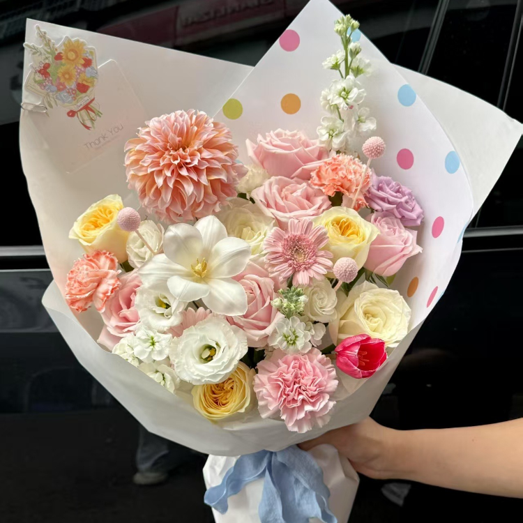 ※ 混搭花束若出現某種花材短缺,改選同色系花材取代而不作另行通知,請放心,絕對不會影響出品品質,請安心選購。