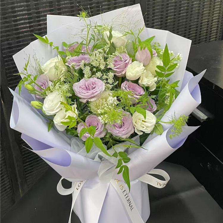 紫色玫瑰,白色桔梗,時令配花