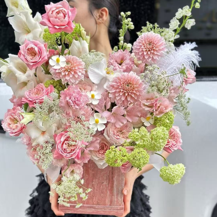 蝴蝶蘭,粉色玫瑰,大麗花,六出花,劍蘭,時令配花