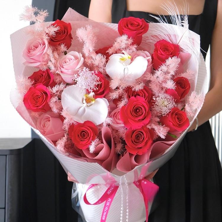 蝴蝶蘭,佛洛依德玫瑰,粉色玫瑰,時令配花