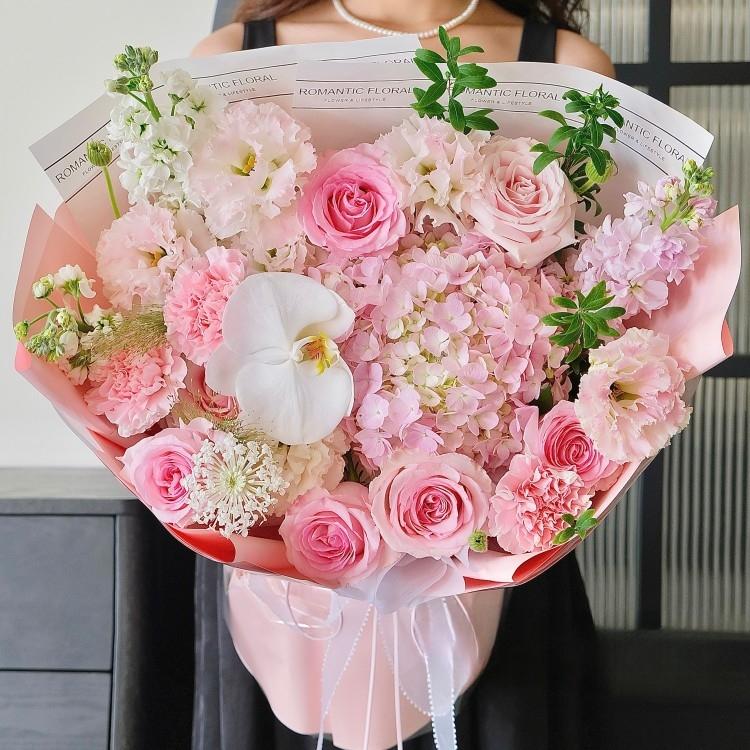 繡球,蝴蝶蘭,粉色玫瑰,康乃馨,紫羅蘭,時令配花