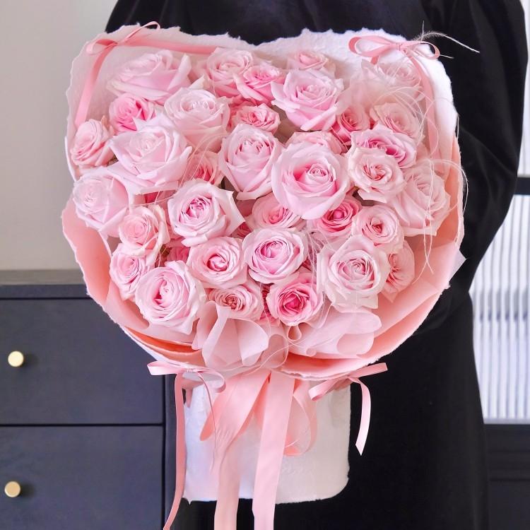 33枝粉色玫瑰,時令配花