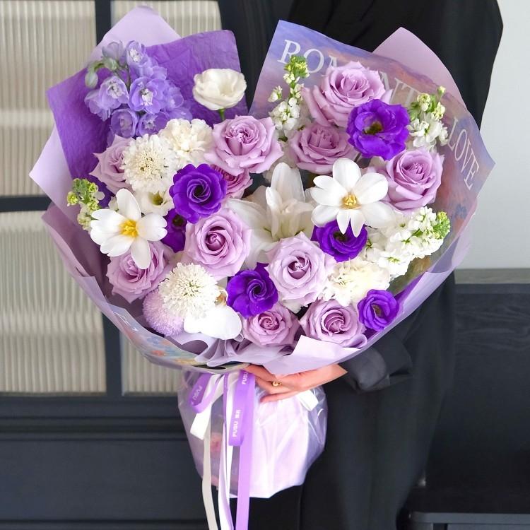 百合,鬱金香,乒乓菊,紫色玫瑰,桔梗,時令配花