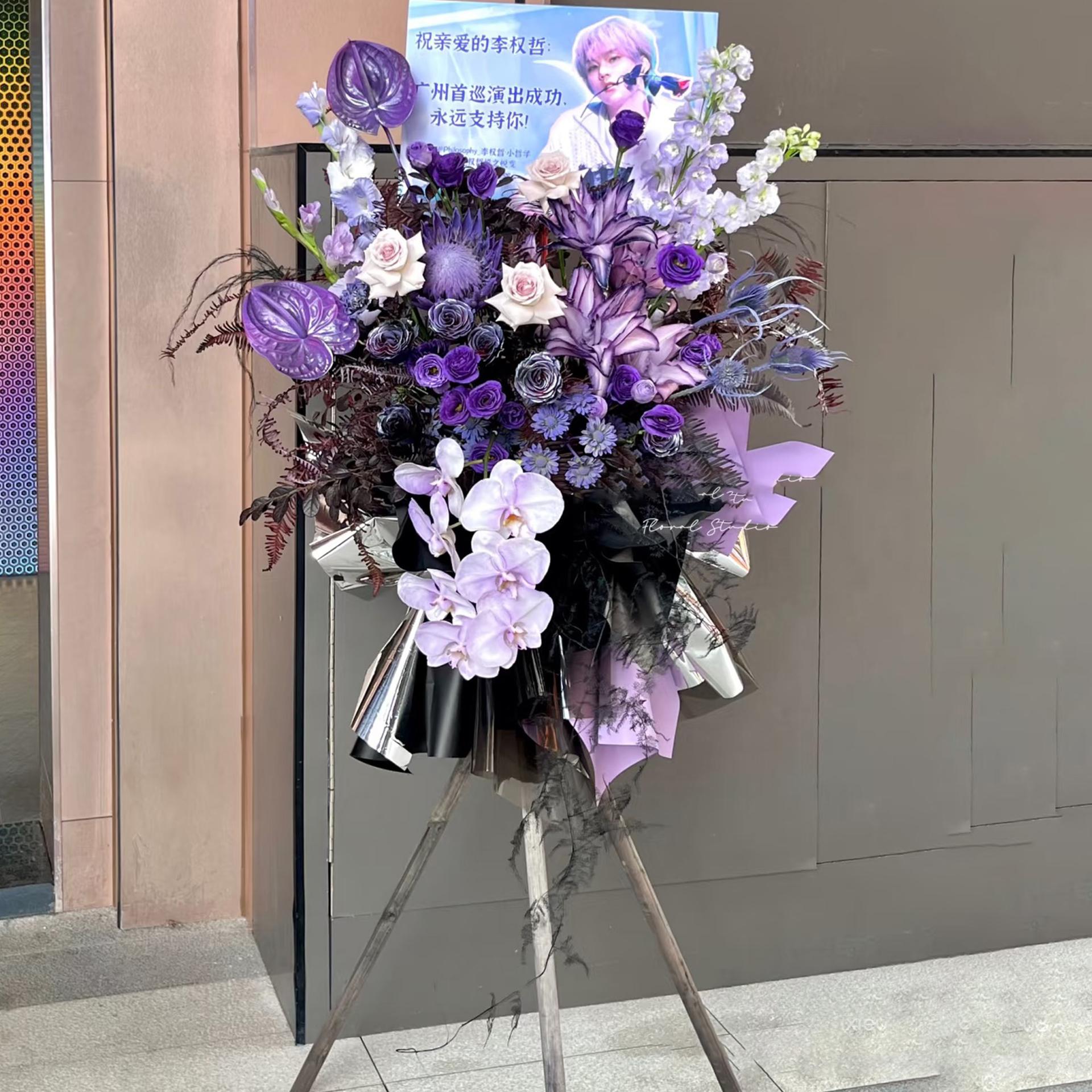 蝴蝶兰,紫色玫瑰,重瓣百合,小雏菊,红掌,紫罗兰,时令配花