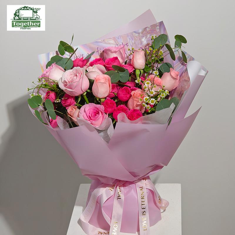 ※ 混搭花束若出現某種花材短缺,改選同色系花材取代而不作另行通知,請放心,絕對不會影響出品品質,請安心選購。