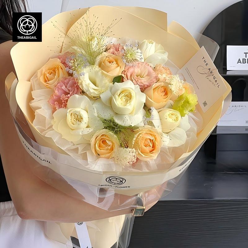 奶油杯玫瑰,香檳玫瑰,康乃馨,時令配花