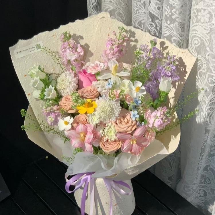※ 混搭花束若出現某種花材短缺,改選同色系花材取代而不作另行通知,請放心,絕對不會影響出品品質,請安心選購。