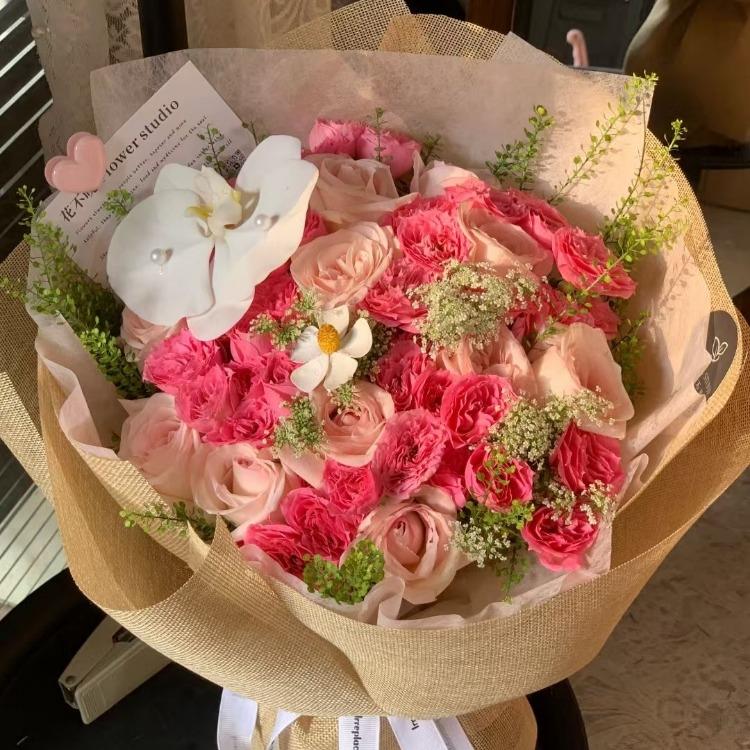 粉色玫瑰,玫紅色玫瑰,蝴蝶蘭,時令配花