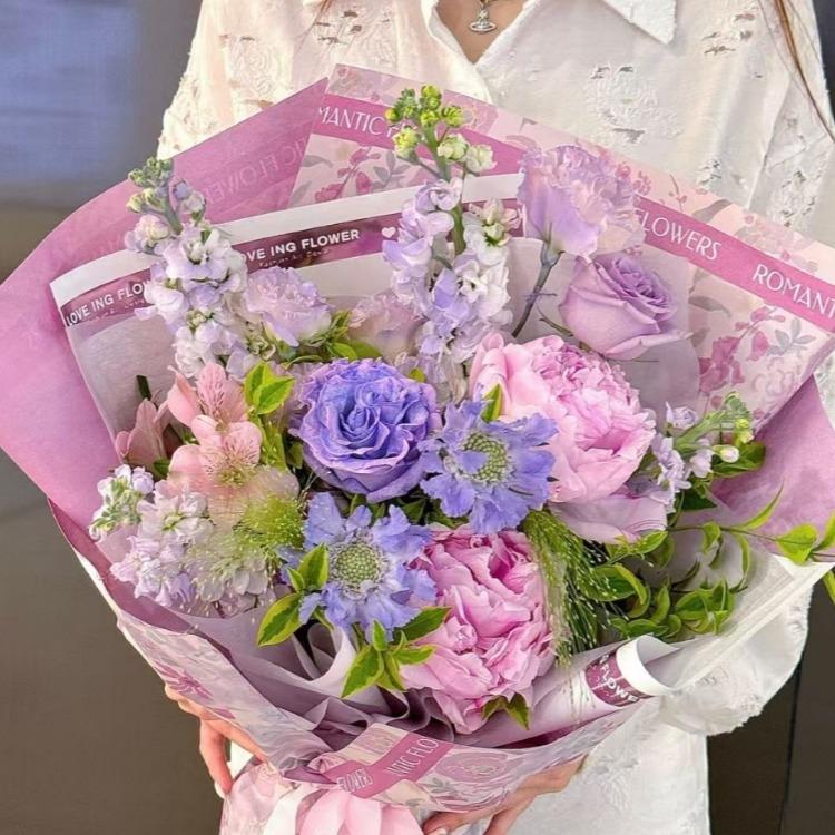 紫色玫瑰,芍藥,藍盆花,松蟲草,時令配花